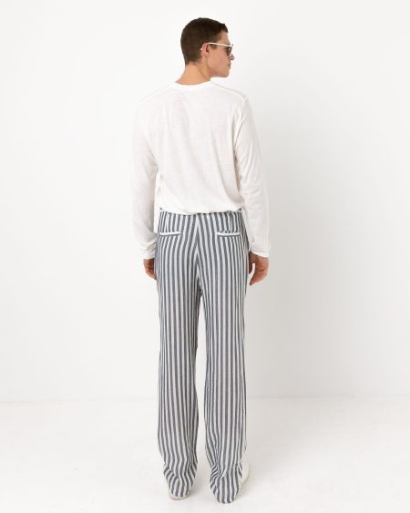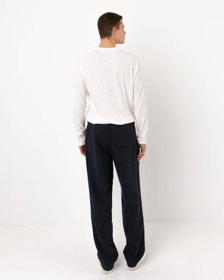 Une coupe moderne et ajustéePantalon à coupe droite et bas étroit pour un look contemporain.  DétailsCeinture de villeCordon de resserrage intérieurFermeture boutons devantPoches italiennesPoches tickets Poches plaquées au dos.  Fabriqué en 100% linTailles : S, M, L, XL, XXL Réf. SH77S25PA1H ### Thibaut mesure 1m90 et porte la taille M. ###…