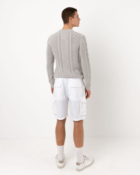 Une coupe moderne et ajustéeShort cargo à coupe droite, avec bas étroit pour un look contemporain.  DétailsCeinture de villeCordon de resserrage intérieurFermeture boutons devantPoches italiennesPoches avec plis sur les côtésPoches plaquées au dos. Fabriqué en 100% linTailles : S, M, L, XL, XXL Réf. SH77S25SH1H ### Thibaut mesure 1m90 et…